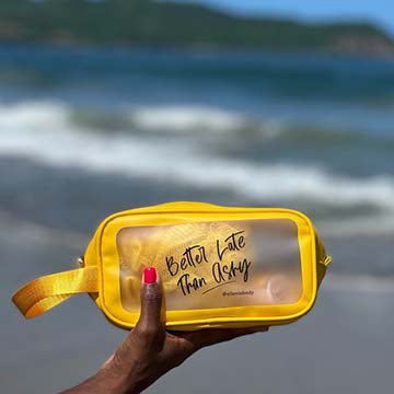 This TSA-approved toiletry clutch is your essential travel companion, making jet-setting with your squad a breeze. Cleared for takeoff? Explore the must-have Girls Night Out-scented products included in The Shea Bag: 2 oz Shea Body Oil, 2 oz Shea Shower Gel, Shea Lip Balm, and our Glow Exfoliating Washcloth. The Shea Bag is the perfect fit for your travel-size Elle Vie essentials.